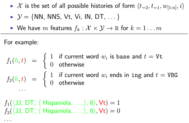g2(x,h,m) = 1 if POS(h)=VBD, and POS(m)=NN; 0 otherwise
